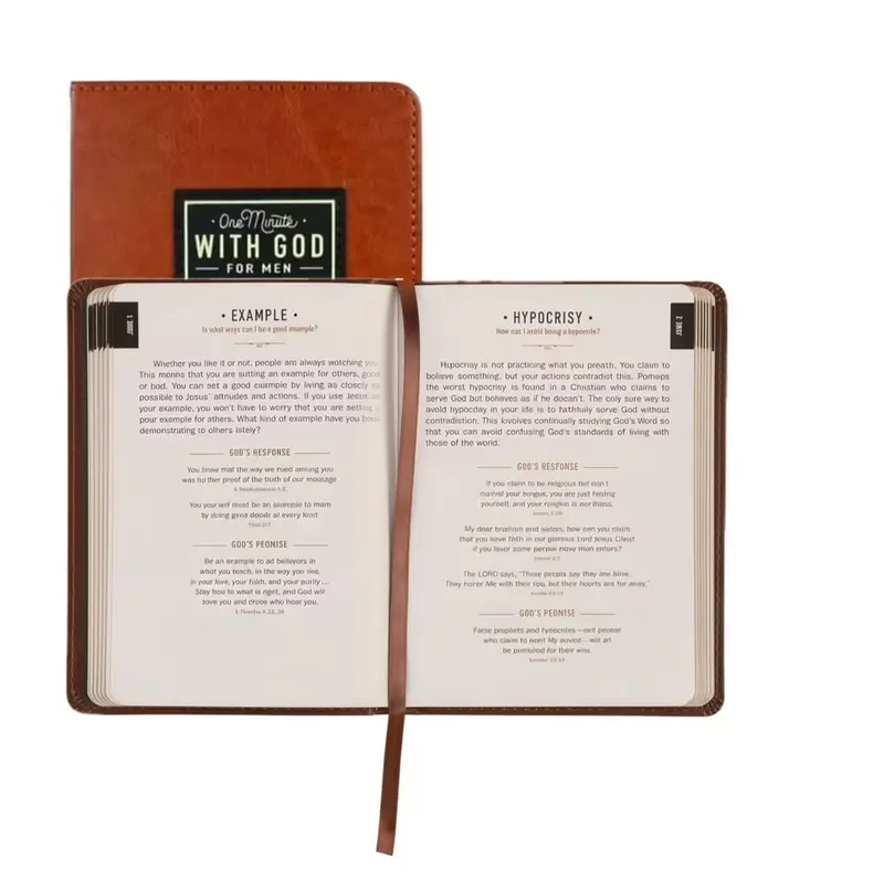 One Minute with God for Men / Bible Study Guided for Women,365 Faith-Building Reflections & Prayer Prompts, Portable Brown Faux Leather Journal, Spiritual Growth Companion for Fathers, Husbands & Sons – Ideal Gift for Holidays, Birthdays & Valentine's Day