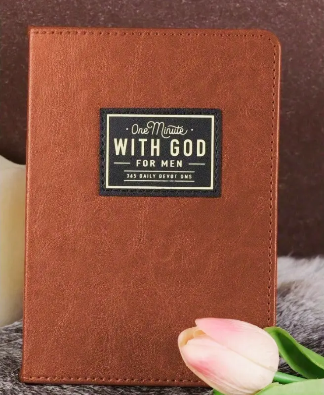 One Minute with God for Men / Bible Study Guided for Women,365 Faith-Building Reflections & Prayer Prompts, Portable Brown Faux Leather Journal, Spiritual Growth Companion for Fathers, Husbands & Sons – Ideal Gift for Holidays, Birthdays & Valentine's Day